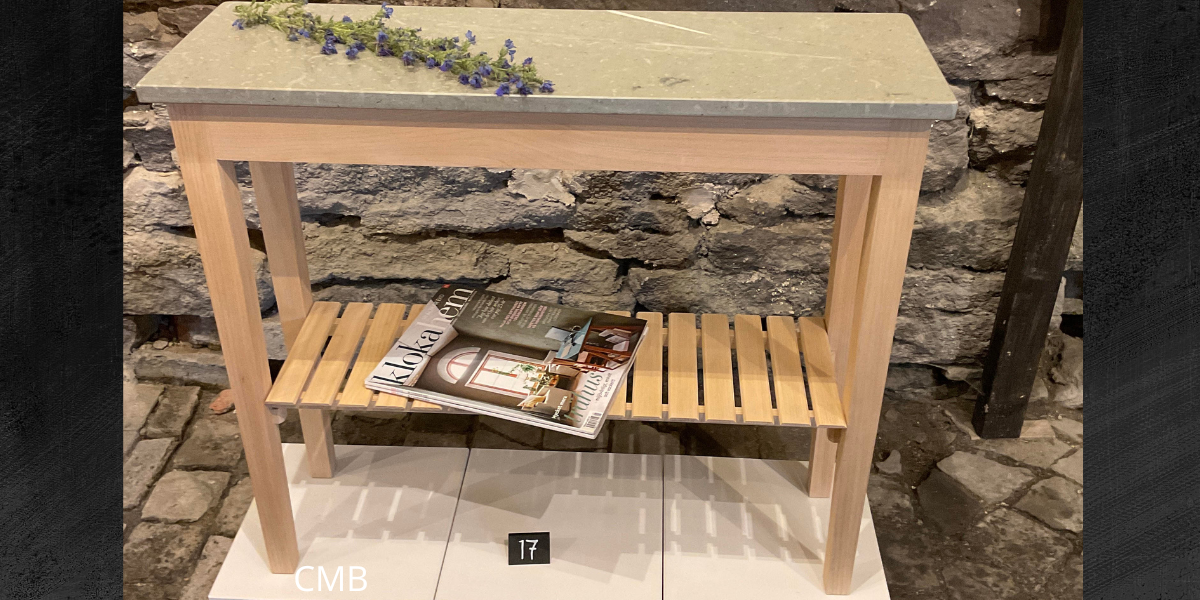 | Sidobord i ek med kalkstensskiva 5200:- |